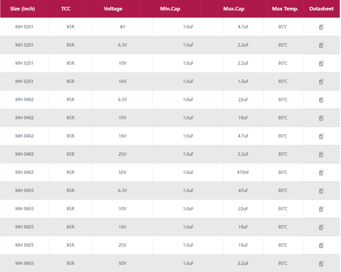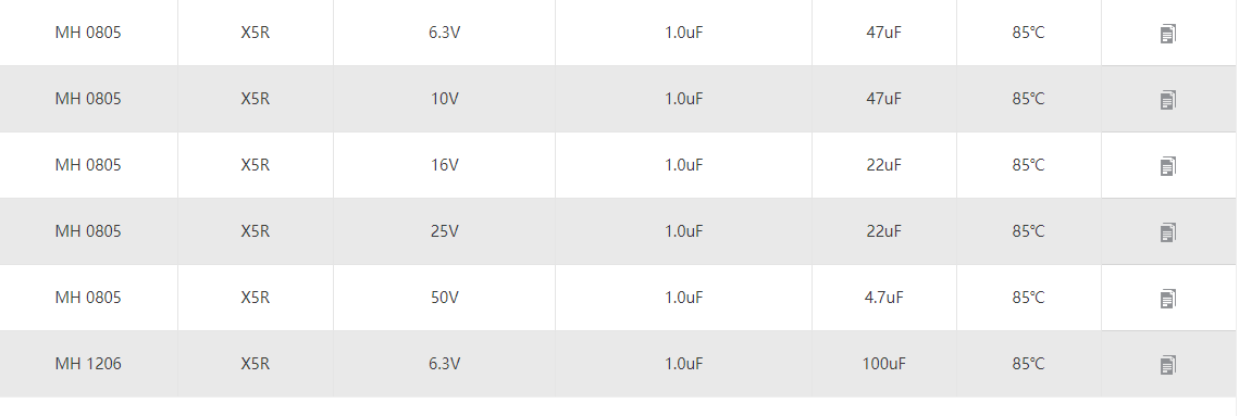 MH:H cap/X5R 通用电容